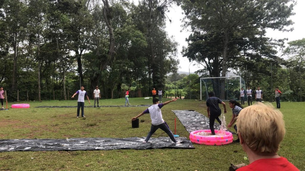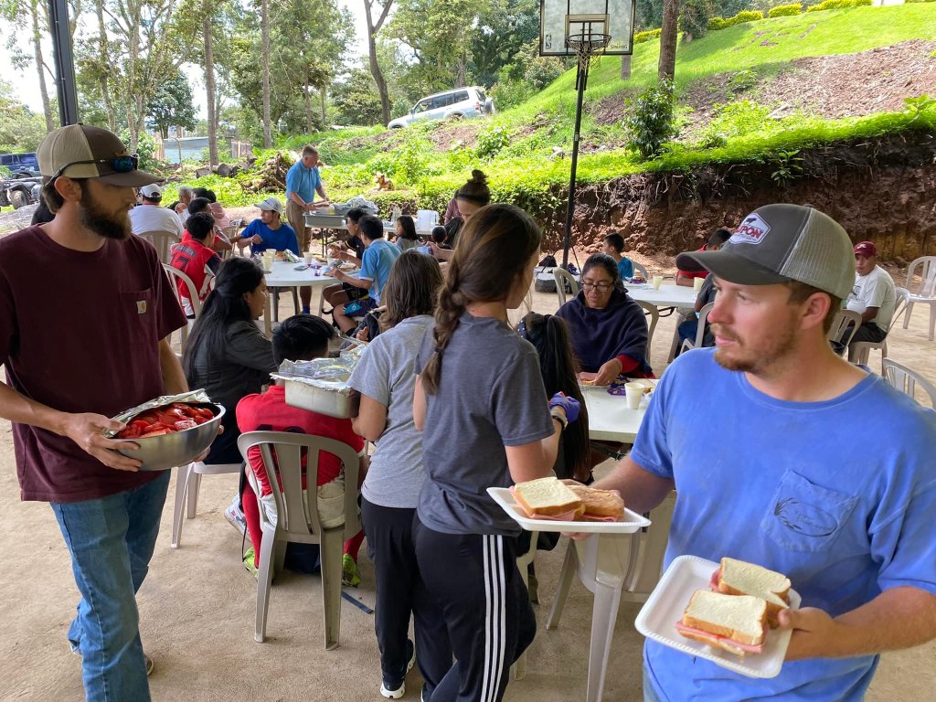 They built 11 houses, attended revival service 4 nights, cooked and served 750 dinners, had 3 different food distributions for 300 people, provided food bags to our 125 school families, prepared lunch for a soccer game, spent quality time with their sponsored children, made a quinceañera cake, altered dresses, shared the Gospel at houses dedications, helped at the school, and played slip and slide kickball with the students!